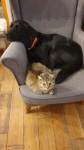 Jesteśmy rodziną, która kocha zwierzaki i tak w naszym domu i sercach zagościły: labradorka: Tosia, mieszaniec (tzw. mini labradorek;): Misia, kotka: Iskierka i akwarium pełne rybek:)
